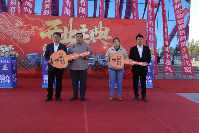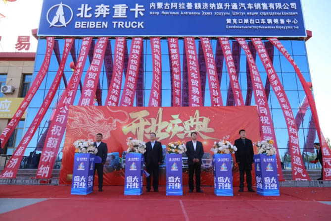 為深入貫徹落實習近平總書記對內蒙古打造我國向北開放重要橋頭堡的重要指示精神,按照中國兵器工業集團與內蒙古自治區政府合作協議的指導意見,在中國兵器“蒙煤一體化項目”的具體要求下,阿拉善盟行署與北奔重汽政企聯合共同制定額濟納旗策克口岸工作方案。北奔重汽、北方車輛積極履行央企職責,充分發揮內蒙古自治區本土汽車制造企業和新能源汽車產業促進會的專業化優勢,聯合產業鏈合作伙伴在策克口岸投資建設自治區首個商用車口岸服務中心,并于10月16日上午,隆重舉行北奔重汽策克口岸車輛銷售服務中心開業慶典剪彩、車輛交付儀式。