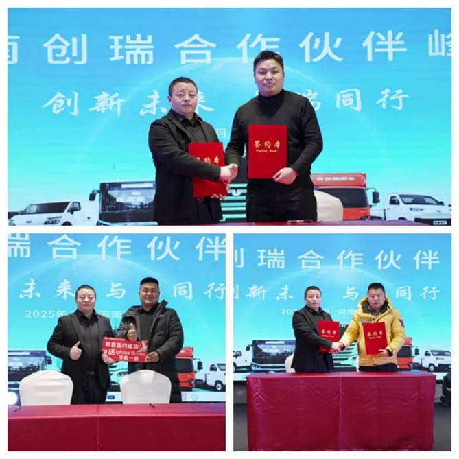 同時(shí),河南創(chuàng)瑞還與鄭州有方、鄭州卓源、河南桐之鑫、眾邦物流、河南鑫東、靠譜新能源、綠森新能源等多家合作伙伴簽訂了2025年一季度戰(zhàn)略合作協(xié)議。