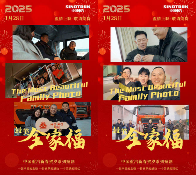 春節(jié)的腳步悄然臨近,歸家團圓與爆竹聲聲將共同迎來新春的序曲。在這一時刻,全家福不僅定格了團聚的幸福瞬間,更成為無數(shù)家庭情感聯(lián)結(jié)的紐帶,銘記著每一份珍貴的記憶,傳遞著每一份無盡的愛意。值此2025年新春佳節(jié)的美好時刻,中國重汽推出了春節(jié)賀歲短劇——《最美全家福》,以此光影為筆,細(xì)膩描繪出卡車司機的溫馨故事,將那些觸動心靈的瞬間一一呈現(xiàn),共同見證愛與希望的傳遞。