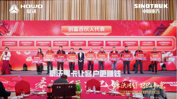 在熱烈的掌聲中,豪沃重卡為功勛卓越的“創(chuàng)富合伙人”與“豪沃代言人”舉辦了榮耀頒獎(jiǎng)儀式,他們以卓越的運(yùn)營智慧和拼搏精神,在臨沂大地書寫了"車輪上的財(cái)富傳奇"。這些行走的品牌名片以真摯口碑搭建信任橋梁,用每一次真誠推薦詮釋著“中國重卡第一選擇”的深層內(nèi)涵。