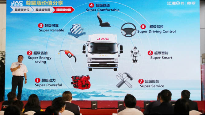 尊耀版給客戶帶來的價值,總結起來就是7個超級,全新一代安徽康明斯B系發動機帶來的超級動力,百公里油耗同比最高節省2升帶來的超級省油,超25000小時發動機臺架測試帶來的超級可靠,2090mm陸地頭等艙駕駛室帶來的超級舒適;絲滑轉彎轉向助力帶來的超級駕控,遠程操控及智能出行帶來的超級智能,智尊服務再升級帶來的超級服務,當然7個超級價值還有更多細節等待廣大客戶去探索及發掘。