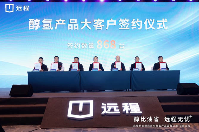 3月1日,遠程新能源商用車醇氫產品品鑒之旅在石家莊舉行,旗下重卡、輕卡、小卡、超級VAN等醇氫電動系列車型亮相現場,并發布了醇、車、貨、站、金融的全方位醇氫生態落地政策。本次活動上,遠程新能源商用車與京津冀地區多家知名企業進行訂單簽約,現場簽約868臺,取得2025年醇氫電動“向北戰役”開門紅。