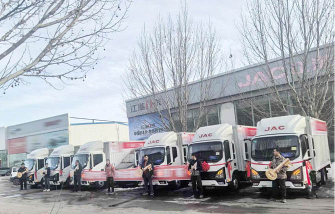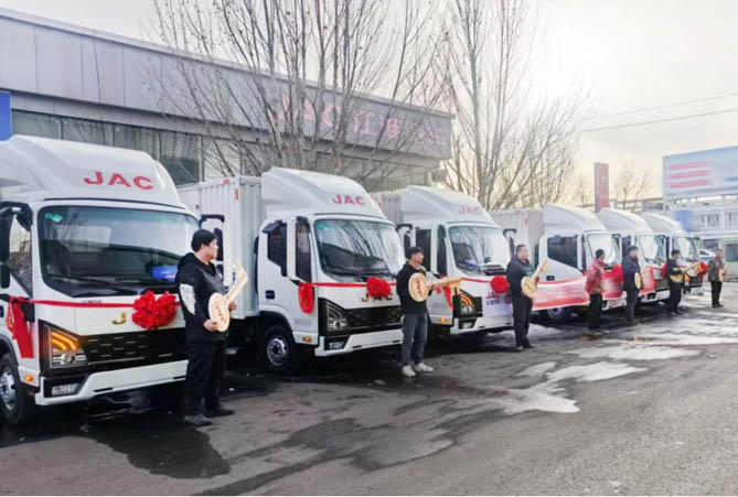 2月中旬,在星城長(zhǎng)沙,江淮1卡康鈴H5批量交付某建筑公司車隊(duì)。創(chuàng)富之星H5作為高價(jià)值輕卡典范,能輕松應(yīng)對(duì)建材運(yùn)輸中的復(fù)雜路況。承載力和動(dòng)力都很強(qiáng)勁,起步快,加速穩(wěn),爬坡很有力。
