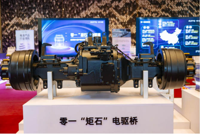 零一汽車推出的“矩石電驅橋”是全球唯一量產的集成式電驅橋,通過將電機、變速箱、取力器和車橋四者高度集成,顛覆了傳統重卡的復雜結構,其采用平行軸集成設計,優化質心與結構剛性,系統重量僅1000kg卻具備16噸級承載能力,其額峰值率達390kW,輪端扭矩48000Nm,最高效率92.7%,在動力性能、傳動高效性、承載能力、耐久能力及防水性能等方面均處于行業領先地位。適配車型覆蓋90%重卡場景,在港口、礦區等復雜工況實測中,驅動效率較傳統方案提升8%。