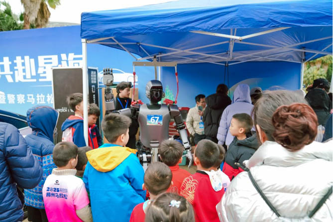 在全馬/半馬、歡樂跑的終點,2位數字化員工守候在乘龍展臺旁,以科技感十足的形象和生動講解,向觀眾們展示乘龍卡車的卓越性能。這一獨特的展示方式迅速吸引了眾多跑友的目光,大家紛紛駐足圍觀,并與智能機器人及展車合影留念,現場氣氛熱烈。