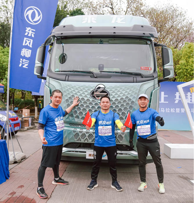 在馬拉松賽程中,東風柳汽的身影隨處可見,不僅有由東風柳汽員工、員工家屬、商乘客戶、合作伙伴及媒體共600人組成的“乘龍跑團”和“星海跑團”揮灑汗水;賽道兩旁還設有12個“汽車音樂加油站”,為參賽選手加油助威。