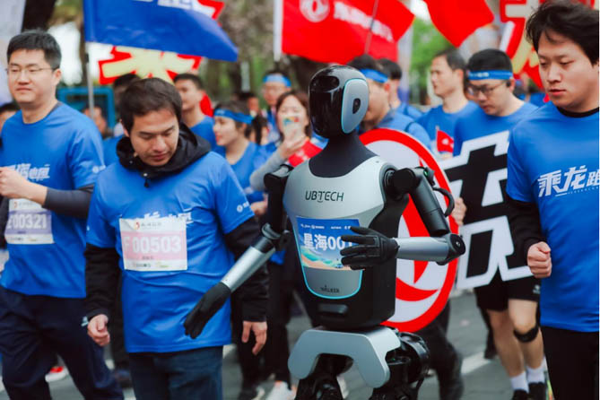 相比前兩屆,今年乘龍的柳馬陣容迎來了新伙伴,3臺“乘龍數字化員工”人形機器人參與到賽事之中。其中一位數字化員工,全程參與了馬拉松比賽,以科技之姿與眾多選手并肩奔跑,鋼鐵跑者與碳基生命同場競技,讓本屆柳州馬拉松賽事更添一抹跨次元的未來感。