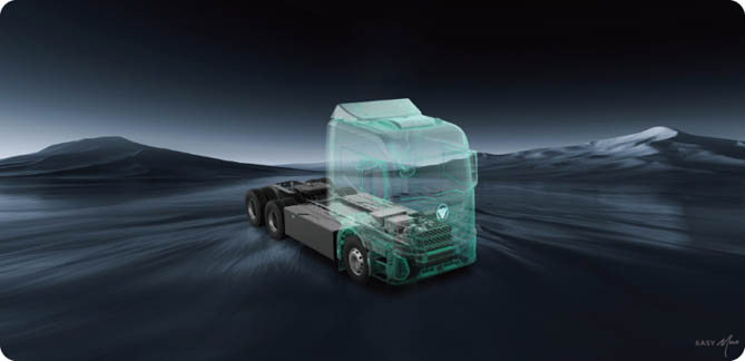 技術創新層面,福田汽車秉持自主研發理念,圍繞純電、混動和氫燃料三大技術路線,構建起完善的核心技術體系。三電技術領域,配備福田愛易科111kWh輕型動力電池、輕型電力電子單元(PEU)、4.5T輕型電驅橋的全自主三電應用的輕卡產品已成功下線,為用戶帶來綠色、智能、高效的運營體驗;混動技術方面,FHS混動技術平臺集成混動專用發動機DHE、專用變速器DHT、混合動力系統DHP等模塊,基于該平臺,歐曼混動重卡實現硬件40余項前沿技術集成與軟件65項策略優化,節能超10%、起步加速性能提升30%;氫燃料技術領域,福田汽車布局大功率燃料電池、熱管理等關鍵核心技術,自主研發的300kW氫燃料電池發動機實現“功率、效率、壽命”三重突破,效率超63%,具備-35℃極寒啟動能力,質量功率密度達811W/kg,處于行業前沿水平。