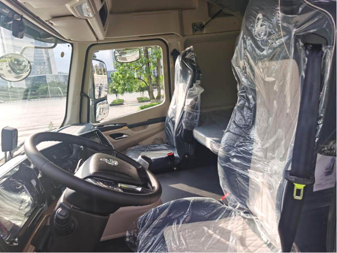 長途駕駛疲勞問題不容忽視,乘龍H5V創富版LNG牽引車注重駕乘品質升級,駕駛室采用平地板設計,高顏值大空間搭配轎車級內飾,打造出移動精裝“一室一廳”,多功能方向盤搭配氣囊減震座椅,為卡友帶來奢適駕乘體驗,極大緩解長途奔波的疲憊。