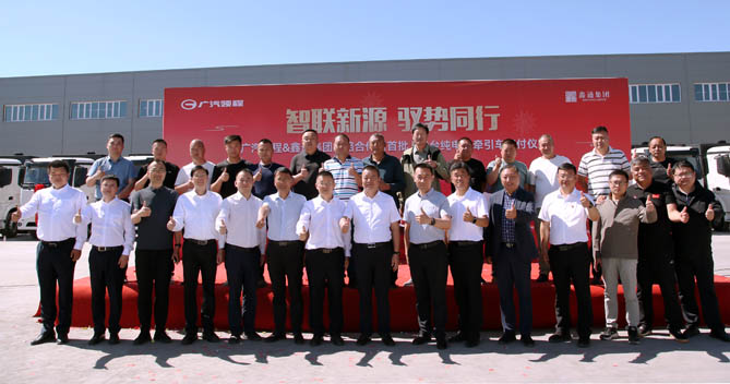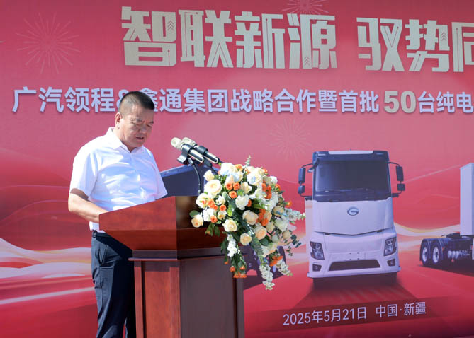 5月21日,廣汽領程新能源商用車有限公司(以下簡稱“廣汽領程”)與鑫通集團在新疆伊犁州新源縣首平順德物流園成功舉行首批50臺純電動牽引車的交付儀式。此次交付,標志著雙方共建新源縣"綠色運輸生態示范區"進入實質落地階段。伊犁州商務局黨組成員、辦公室主任張強,新源縣政府黨組成員、工業園區黨工委書記余勇,新源縣商務和工業信息化局黨組書記王玉新,揚州市援疆指揮組項目辦主任康磊,廣東省對口支援新疆工作前方指揮部駐疏附縣工作隊曹露組長、張成副組長,廣汽傳祺新疆總經理駱海天,鑫通集團董事長趙冠軍,新源縣首平順德運輸有限公司總經理李濟慎,廣汽領程黨委書記夏強等領導和嘉賓代表出席儀式。