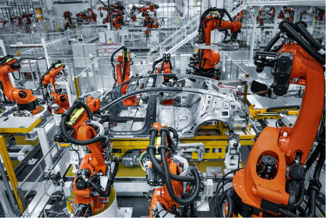 尊界超級工廠配備超過1800臺智能機器人,實現沖焊涂總全面自動化與數字化,同時支持智能柔性定制能力,將尊界的極致工藝要求完美落地。