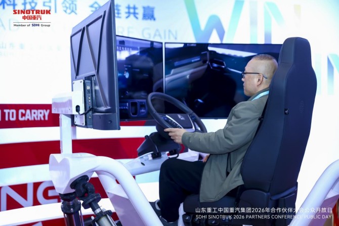 在“超級卡車”展區(qū),一輛輛凝聚匠心與科技的整車成為最具人氣的打卡點。現(xiàn)場公眾不僅可近距離感受車輛設(shè)計的磅礴氣勢,更是通過模擬駕駛體驗真實駕控,在虛擬道路上領(lǐng)略中國重汽產(chǎn)品的卓越性能。