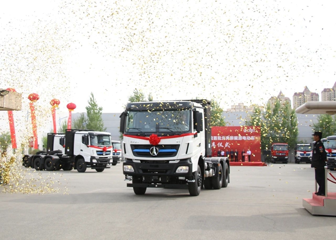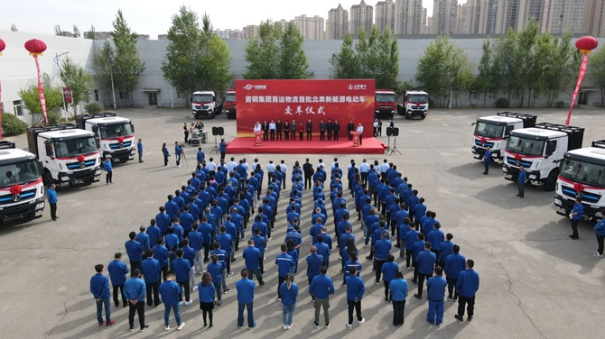 在張銳宣布“首鋼集團首運物流公司首批北奔新能源電動車”現在開始發車后,20臺北奔新能源電動車駛出技術中心,正式奔赴首鋼集團首運物流運輸一線。