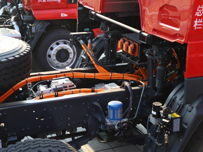 工程運輸對動力的要求極為嚴苛。乘龍H7 8x4純電自卸車配置綠控550KW超大功率電機(可爆發748馬力),搭配4檔AMT智能變速箱,形成高性能動力總成。無論是礦區陡坡還是泥濘工地,車輛起步迅捷、爬坡有力,即便滿載狀態下也能保持穩定輸出,徹底告別動力不足的困擾。
