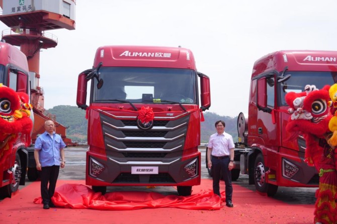 10月18日:以“大可當先 勁享極效”為主題的歐曼星輝16L大馬力燃氣牽引車上市發布會在銀川隆重舉行,并發布訂車政策,將首批歐曼星輝16L大馬力燃氣牽引車交付訂車客戶,并與西北物流企業、經銷商代表簽約達成57臺訂單合作。