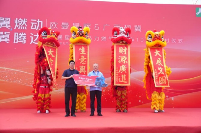 5月11日:“歐曼星輝&廣西翅冀 歐曼星翼大馬力燃氣牽引車100臺交車儀式”在廣西梧州舉行。此次歐曼星翼 14L-520 馬力燃氣牽引車的交付,充分彰顯了歐曼動力技術的“硬核”實力,以及“以用戶為中心”的服務踐行,不僅為資源運輸領域帶來專屬化的產品和服務保障,更樹立了大馬力燃氣重卡的品質標桿。