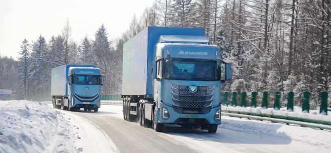 從長春始發(fā),車隊(duì)便率先踏入-30℃極寒核心區(qū)域,全程歷經(jīng)多輪露天靜置、晝夜溫差交替的極端考驗(yàn),無論是長春城區(qū)的低溫冷啟動(dòng),還是白山至沈陽沿途的持續(xù)嚴(yán)寒行駛,都對(duì)車輛的低溫適應(yīng)性提出極致要求,也正是在這條貫穿極寒地帶的核心路線上,歐曼銀河純電重卡的超寬溫域適配能力得到全面驗(yàn)證。
