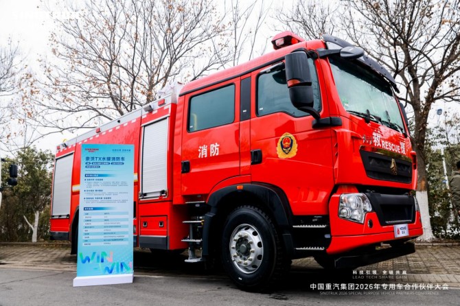 在近期開展的中國重汽集團2026年專用車合作伙伴大會上,豪沃重卡攜多品類專用車產品重磅亮相,展示其全新場景化解決方案,成為全場焦點。其中,豪沃TX水罐消防車以全面實力回應現代化消防救援對高效、安全、智能的核心需求——搭載曼技術MC07H.35P-61發動機,功率提升至258kw,整車比功率高達13.2kw/t;車輛全面升級中國重汽3.0電器架構+ TX7 PRO全新內飾,配備一鍵啟動、無鑰匙進入、一鍵尋車、360環視、12.3吋多媒體娛樂屏、EPB 電子駐車等多項智能配置,在緊張的任務環境中為用戶提供清晰的信息支持與從容的操作體驗,精準貼合現代化消防裝備的核心需求。