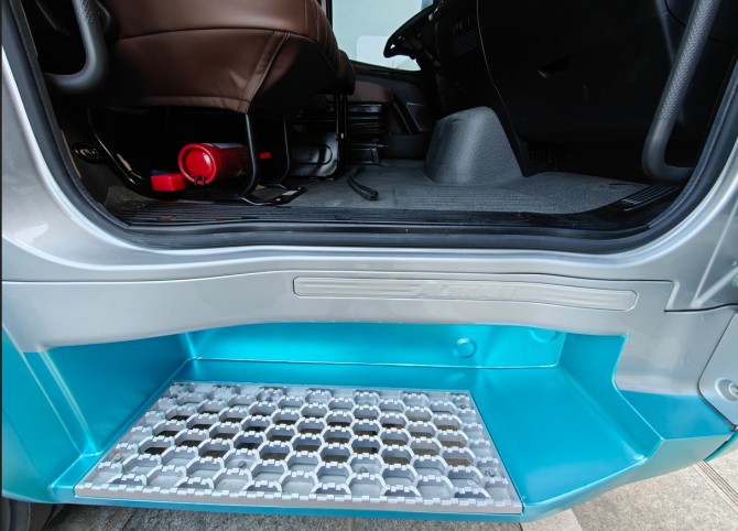 產品創新采用低入口設計,410mm 黃金高度踏步實現 “一步登車”,無需費力攀爬,將上下車作業強度降低 40%,徹底解決高頻上下車的疲勞問題;2350mm 寬體駕駛室搭配平地板結構,實現 1930mm 站立空間,作業時可自由轉身、取物,全艙無障礙通行,告別狹窄空間的操作束縛。同時,產品配備行業最大視野前擋風玻璃與 8.25 米行業最小轉彎半徑,讓街巷作業更靈活、視野更開闊,有效規避視野受限導致的作業效率低、安全風險高等問題。