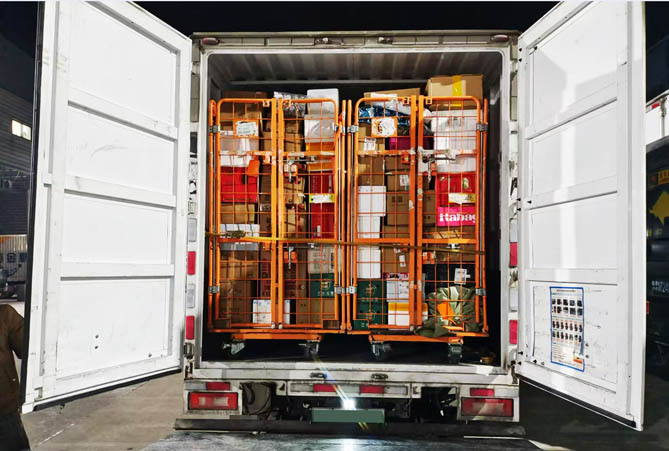 今心物流運營線路,主要是往返紹興越城區(qū)、科橋區(qū)、諸暨等配送點。快遞包裹大多屬輕拋貨,車輛到達轉(zhuǎn)運點后,貨物從輸送線上下來,到貨臺用籠車裝好,裝卸人員落下車輛尾板,便將其送到廂車內(nèi)。