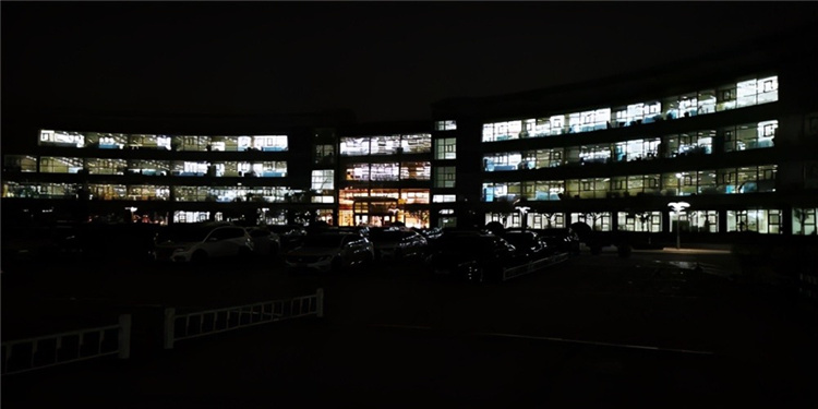 (記者從園區門口拍攝的晚上10點的濰柴研發大樓)