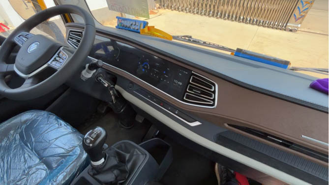 在當下商用車行業普遍追求智能化的背景下,整車的交互體驗做得相當到位,10.25寸液晶儀表+多媒體大屏的雙聯屏設計,提升了駕駛艙的科技氛圍和信息集成度。其中液晶儀表可顯示車輛狀態、保養提示及故障診斷信息,便于駕駛員即時掌握車輛工況。智能語音控制系統可操作空調、多媒體等,減少了駕駛員在行車過程中的手動操作,有助于提升行車安全性。