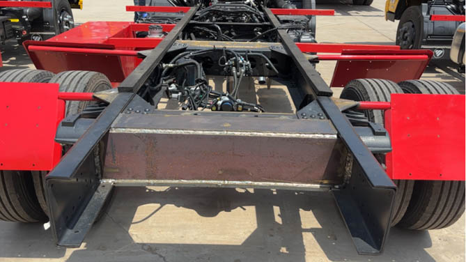 整車采用215*65*(6+4)結構直通式雙層車架,匹配前8后10+6片的高承載板簧,以及加強型輪胎與十萬公里免維護后橋,為整車提供了執行重載清障任務的堅實基礎。860mm的較低貨臺高度,以175cm左右的平均身高來看,僅到腰部以下的位置,有利于上裝設計和降低作業重心,同時方便卡友拿取設備,提升穩定性。
